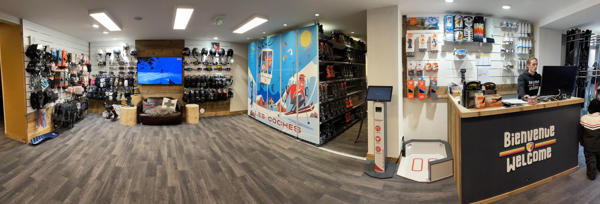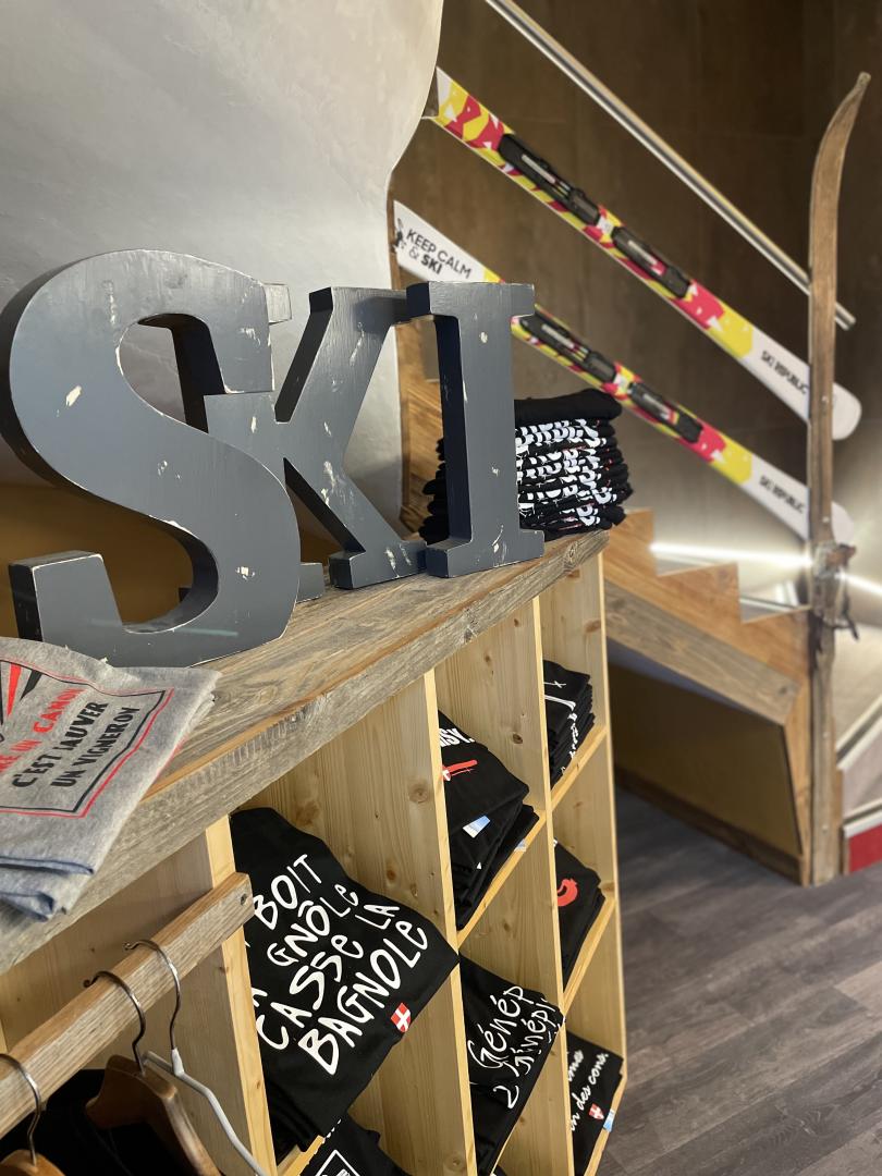 Located in the shopping district and just 50 meters from the main parking lot, discover our ski and snowboard rental shop . We welcome you every day during the season to get you kitted out at the best price. The Ski Republic Centre shop has a large rental area as well as a spacious retail area. Gloves, ski helmets, goggles, and hats—you'll find a full range of ski equipment and accessories.